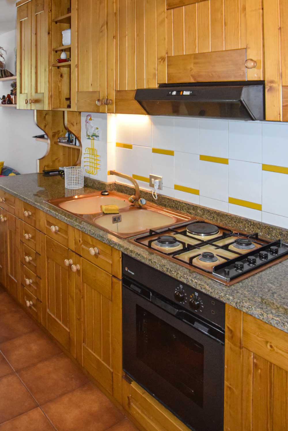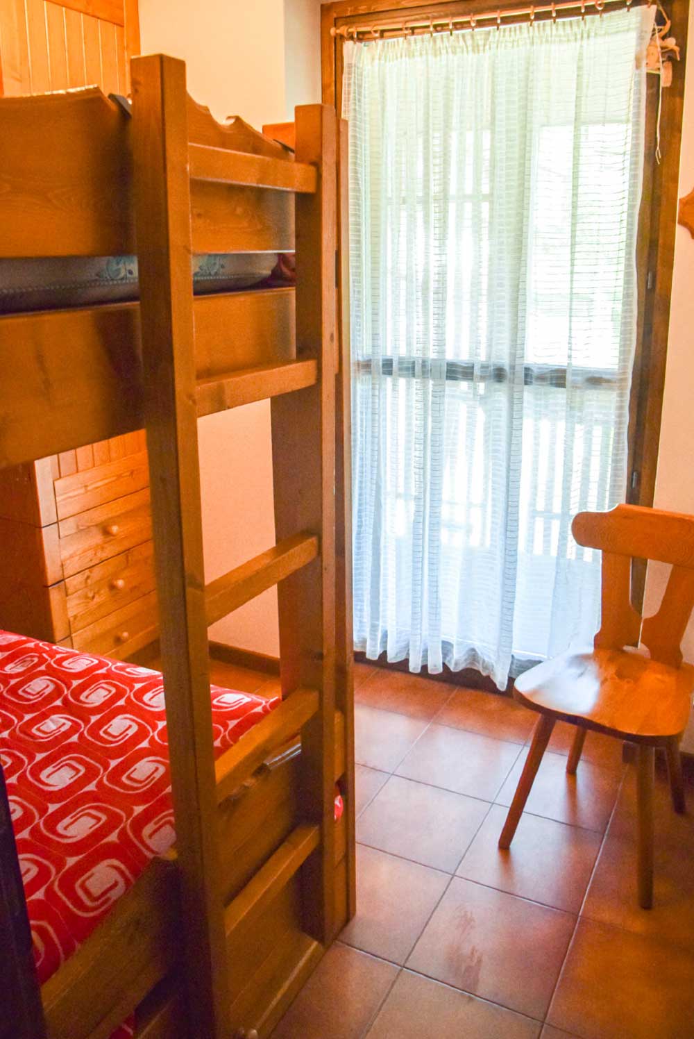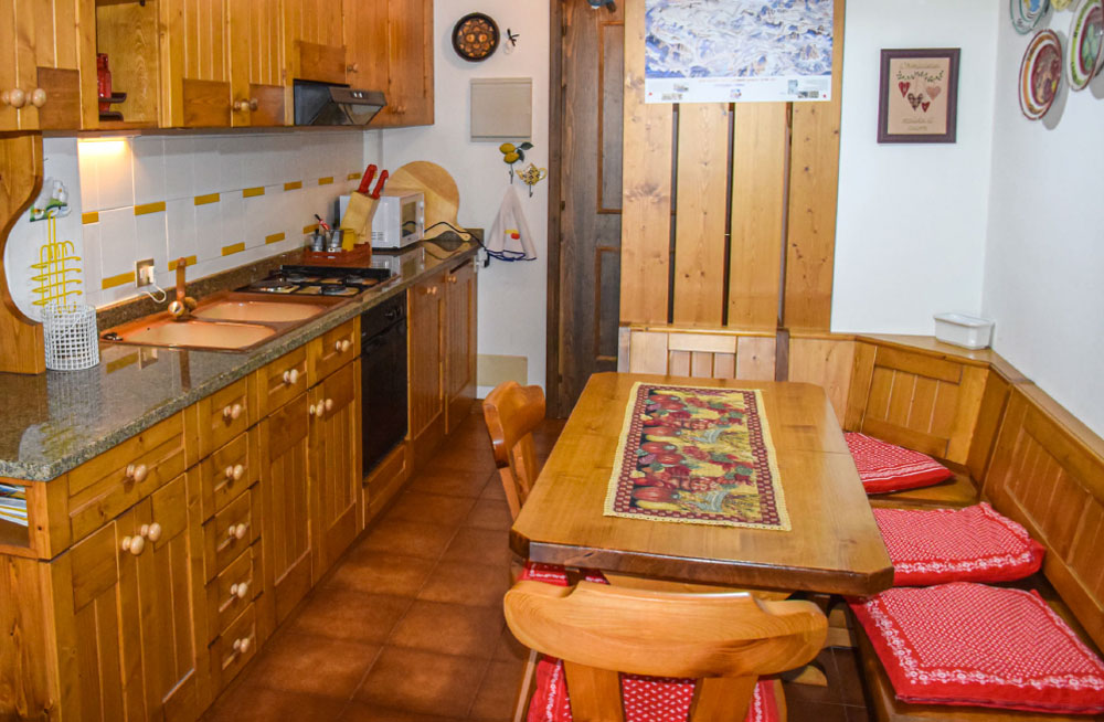 L’appartamento è composto da ingresso e cucina, soggiorno con tavolo allungabile, camera da letto matrimoniale, camera con 2 letti singoli (a castello), bagno con doccia e lavatrice. I locali sono arredati in stile caratteristico in legno locale, il riscaldamento è elettrico e per i più esperti è possibile usufruire della stufa a legna. Il soggiorno e una delle camere permettono l’accesso al panoramico terrazzo, dove ammirare gli incantevoli panorami in pieno relax.